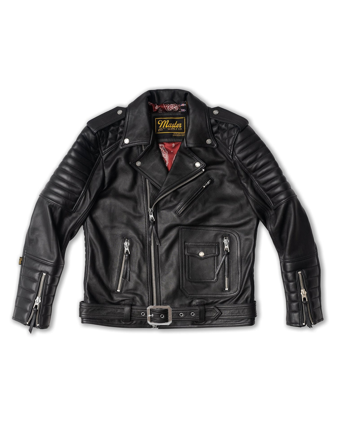 Beltrans sand washed leather jacket with stretch leather hems & cuffs