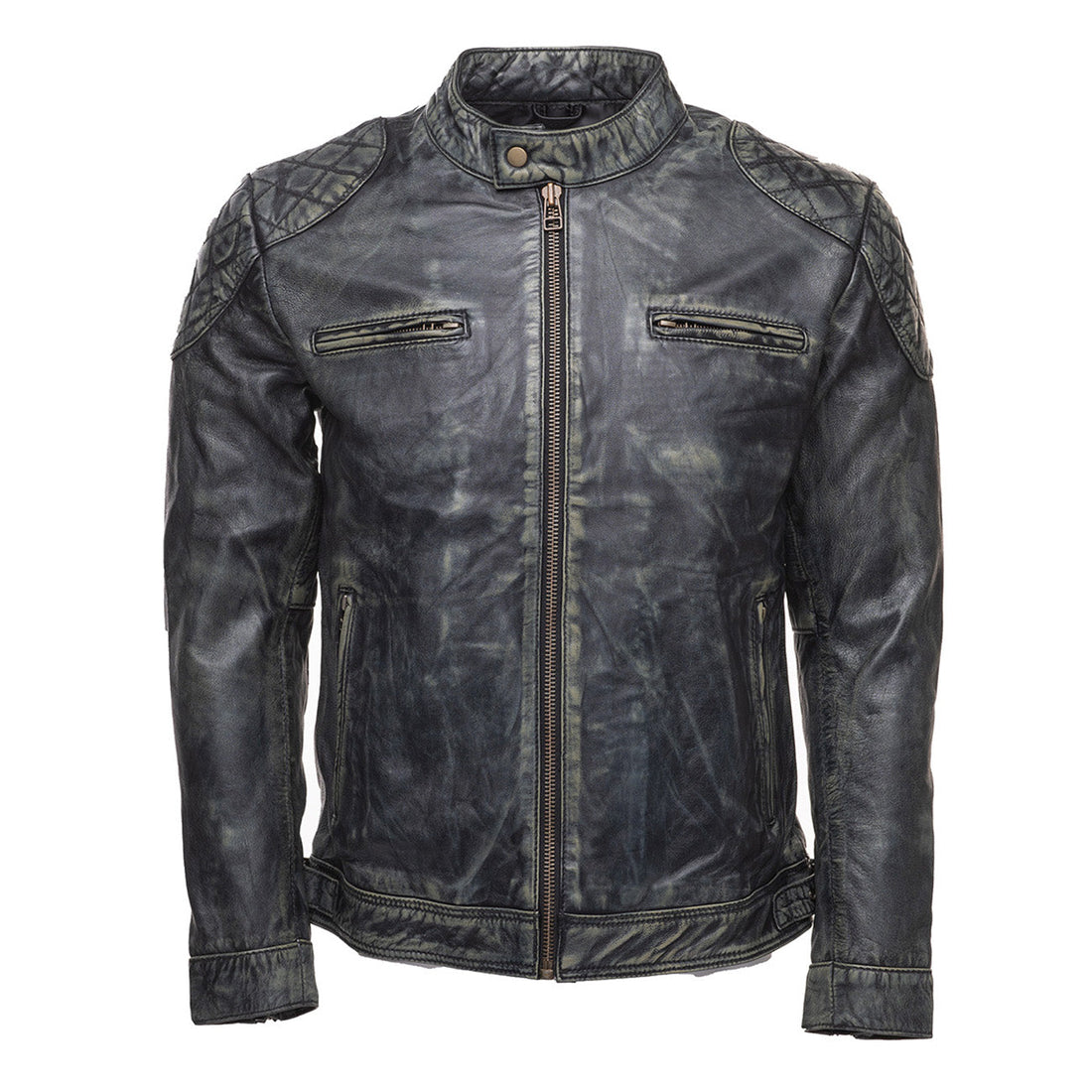 Rocco Vintage Distressed Grey Aviator bomber shearling jacket with hoodie