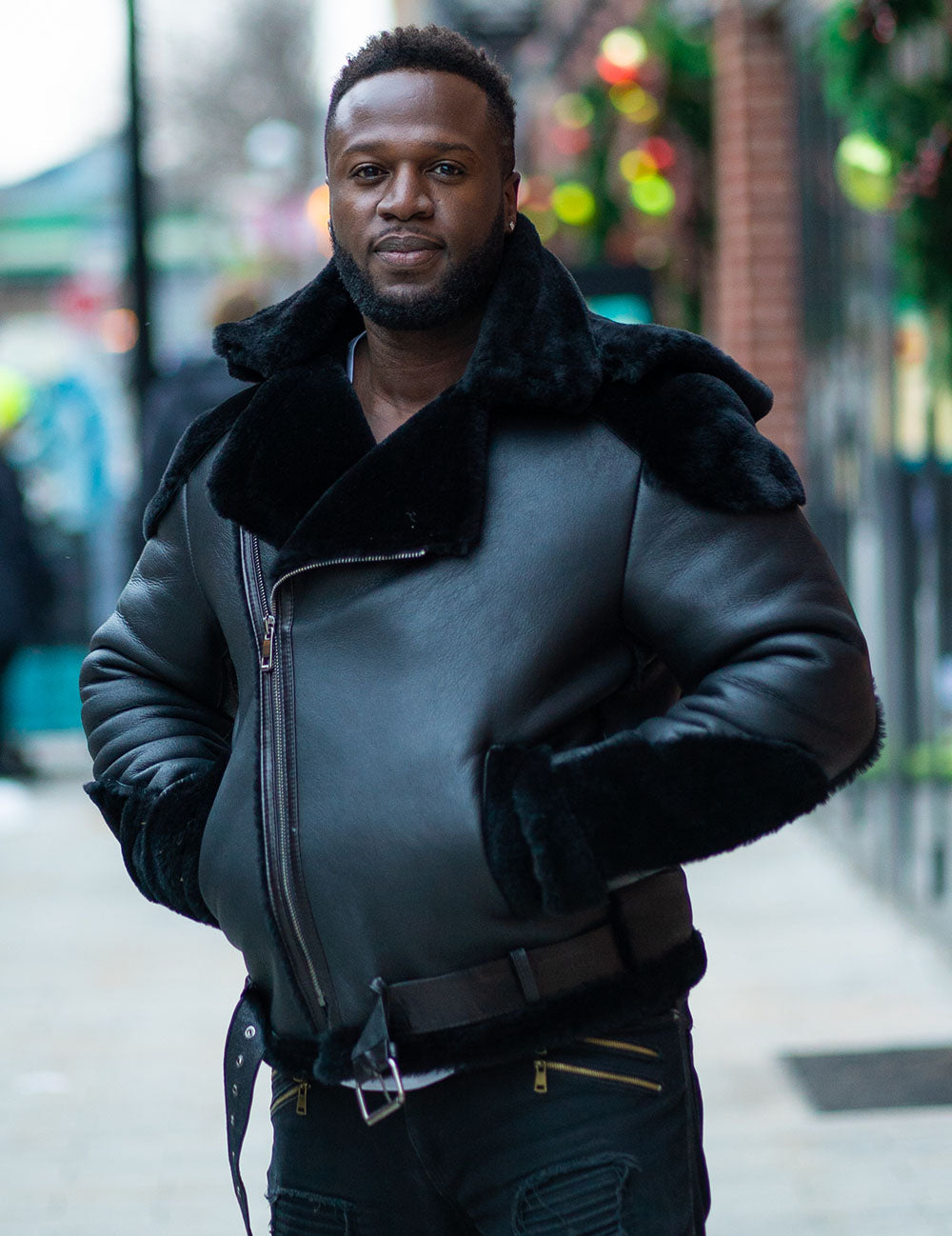 Alek's Biker Shearling Jacket with Fur Details now becomes a hot sensation among young people. For this season, Biker Jacket is a comfort-chic outwear that will keep you cozy all day long. The super trendy leather jacket has amazing details. It is made out of a 100% Heavy USA-made double-faced sheepskin shearling and a 100% sheepskin shearling inner lining provides a comfortable look with immense pleasure. Further, it has a shirt-like collar with a belt and a zipper closure on the front to give a sophisticated look.