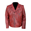 Winter is the most appropriate time to wear this amazing antique red quilted biker leather jacket. A jacket that you can style with any outfit. This jacket combines classic design with a modern twist, offering a unique and sophisticated look. The rich red hue and quilted texture add a touch of vintage charm, making it a versatile addition to your wardrobe. Three zip pockets can be found on the outside of the jacket, as well as one pockets inside that can be used to keep your essentials. The satin polyester inner lining will give you a comfortable fit. An exceptional characteristic of it is its lapels with snap buttons, streamlined sleeves, and zippered cuffs.