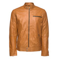 You don't need to work too arduously to look exquisite because the Arthur camel café racer leather jacket is already a grandstander. It has a satin polyester inner lining that makes you warm and comfortable. It has a round collar with 2 snap buttons, a zipper cuff and closure, and 1 pocket inside & 2 functional pockets outside. This is so that you will be protected from the winter breeze.