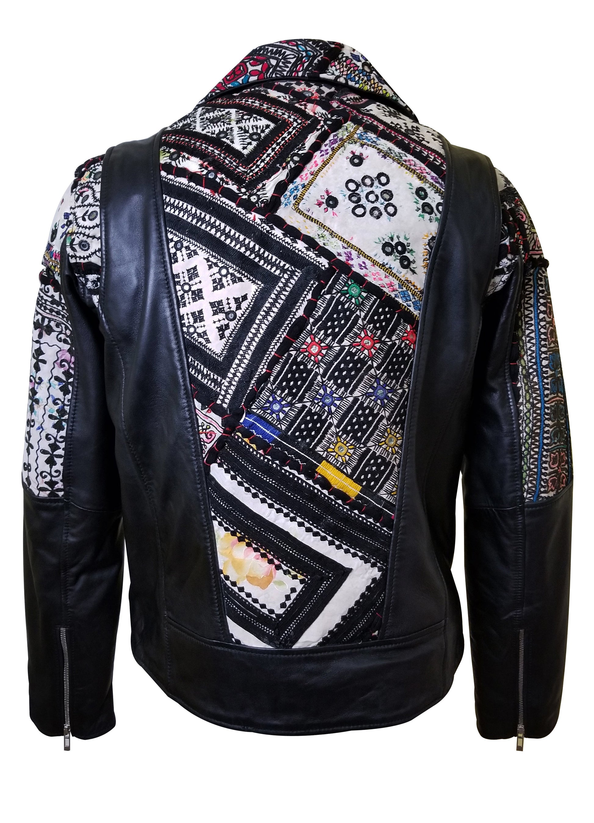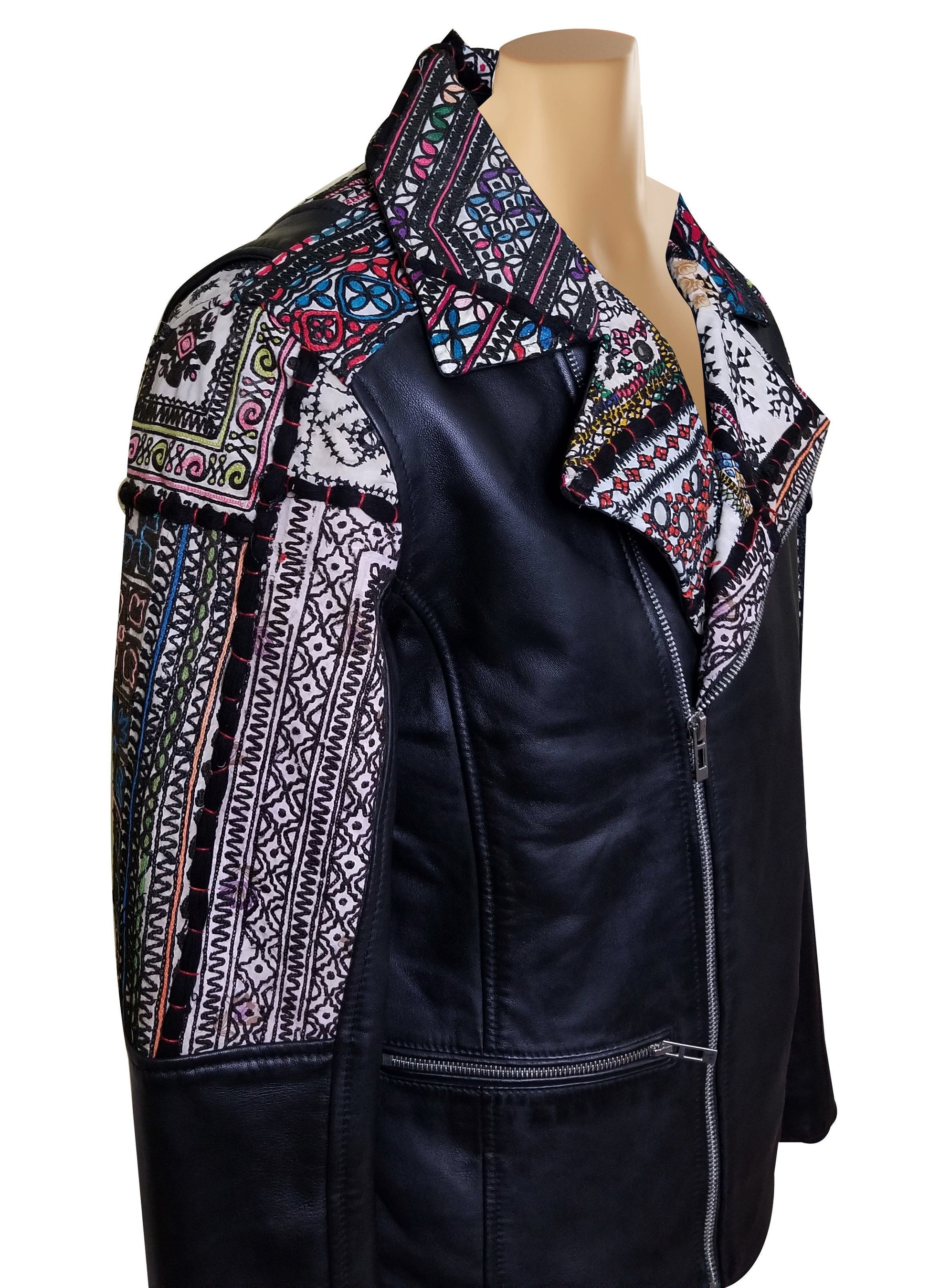Bohemian Leather jacket with Tribal Hand Embroidered Fabric