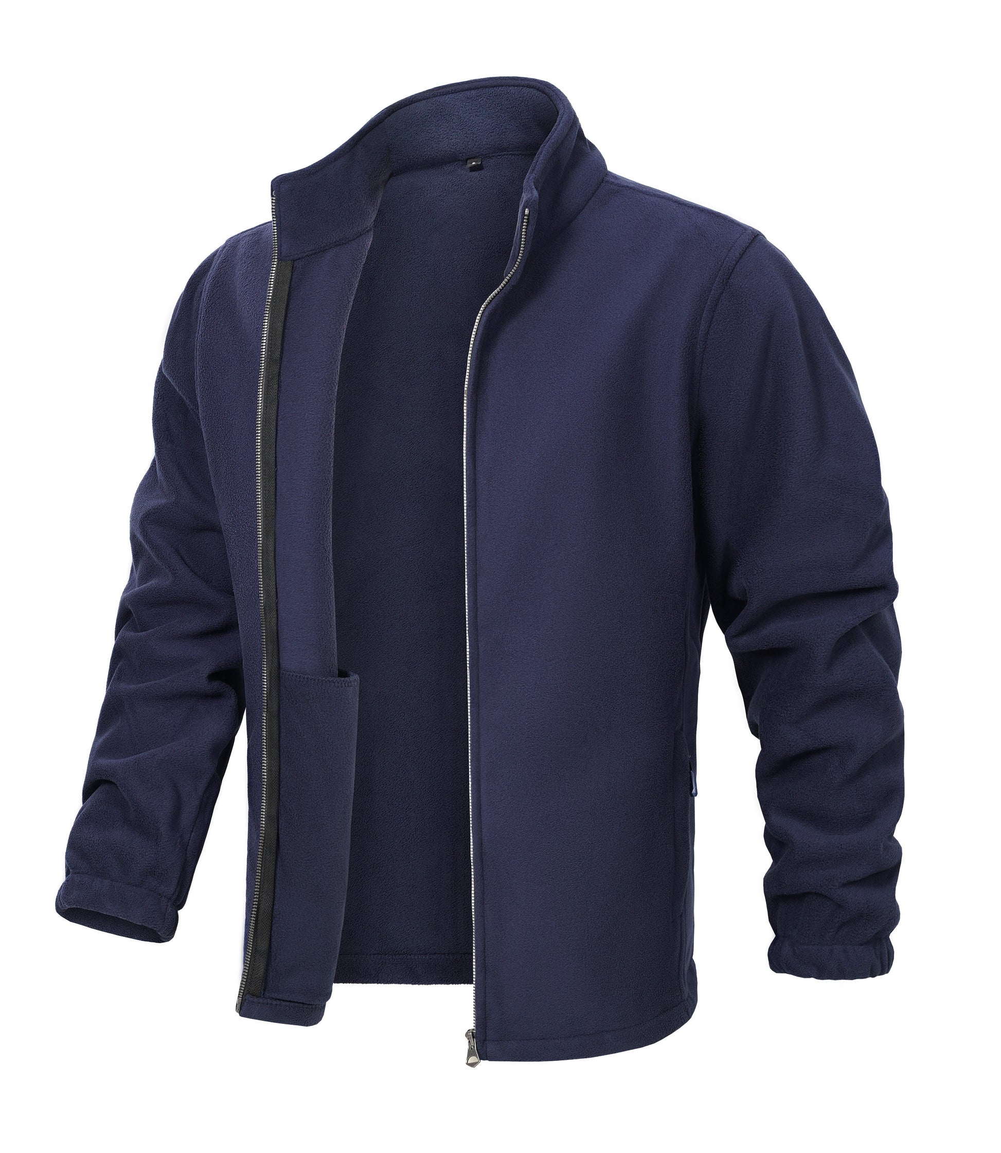 This jacket is crafted from premium fleece for exceptional warmth and softness, making it ideal for layering during the colder months. The classic navy color ensures versatility and easy pairing with any outfit, while the straightforward zip-up design offers practicality and ease of use. Features include a high collar to protect against the wind and zippered pockets to keep your essentials secure. Whether you're heading out for a walk or running errands, this fleece jacket provides both comfort and style.