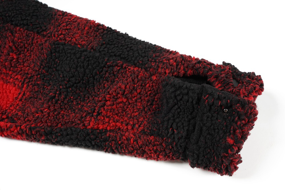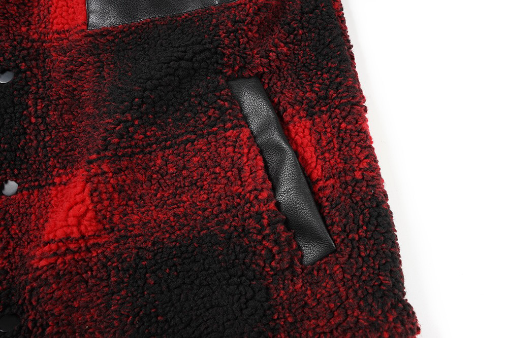 This rugged yet cozy jacket combines classic plaid in red and black with a plush sherpa lining for unparalleled warmth and comfort. Featuring a stylish button-up front and a practical chest pocket in contrasting black, this piece is both functional and fashionable. The durable outer fabric ensures lasting wear, while the soft inner lining keeps you snug on chilly days.