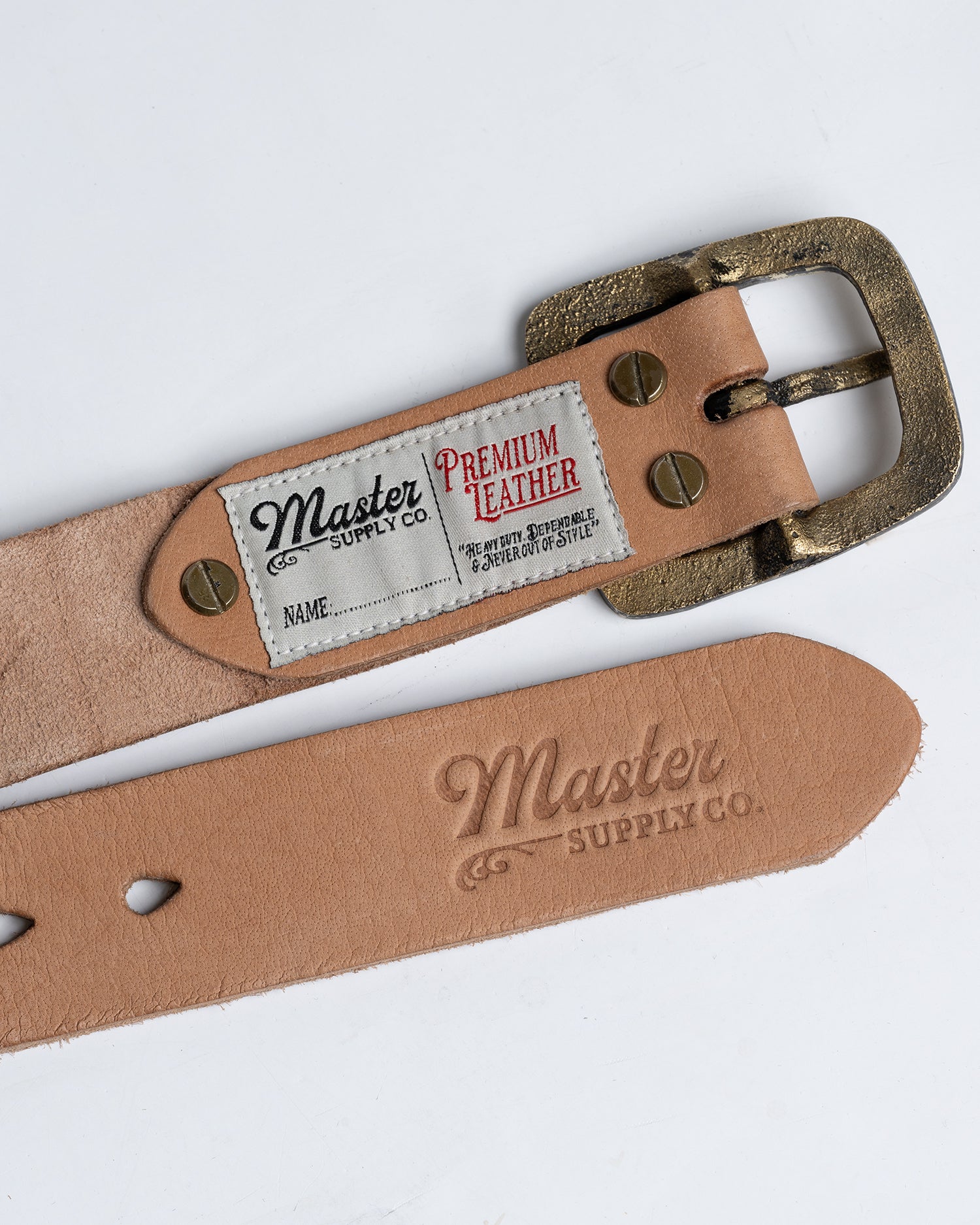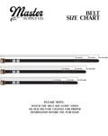 Crafted for the long haul, our Master Supply Co leather belts are a rugged and versatile addition to your collection. Made from 100% vegetable-tanned buffalo leather, these belts boast a robust 4.2mm thickness, ensuring durability and longevity. The solid brass hardware is built to last, while the Master embossed adds subtle branding.