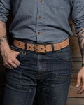 Available in both black and natural veg-tanned finishes, these belts offer versatility to suit any wardrobe. Choose between the classic traditional buckle or our unique antique-style buckle to complement your personal taste.