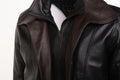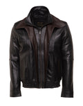 Byrne's brown and black Aviator style leather jacket with spread collars
