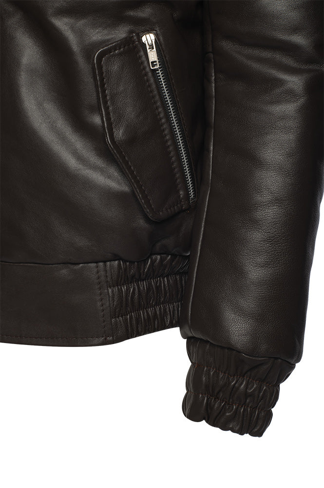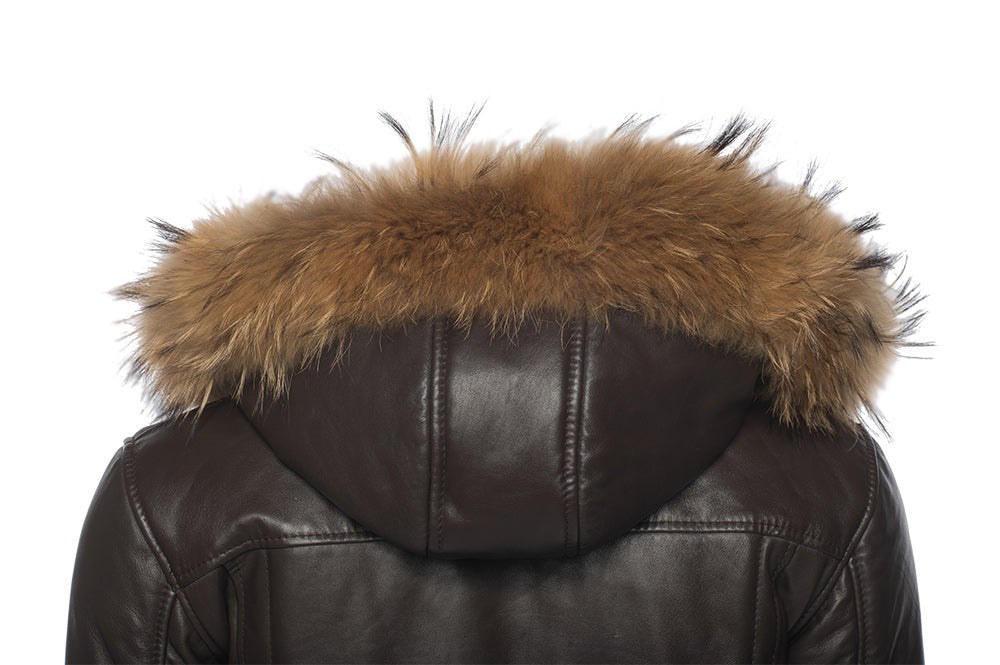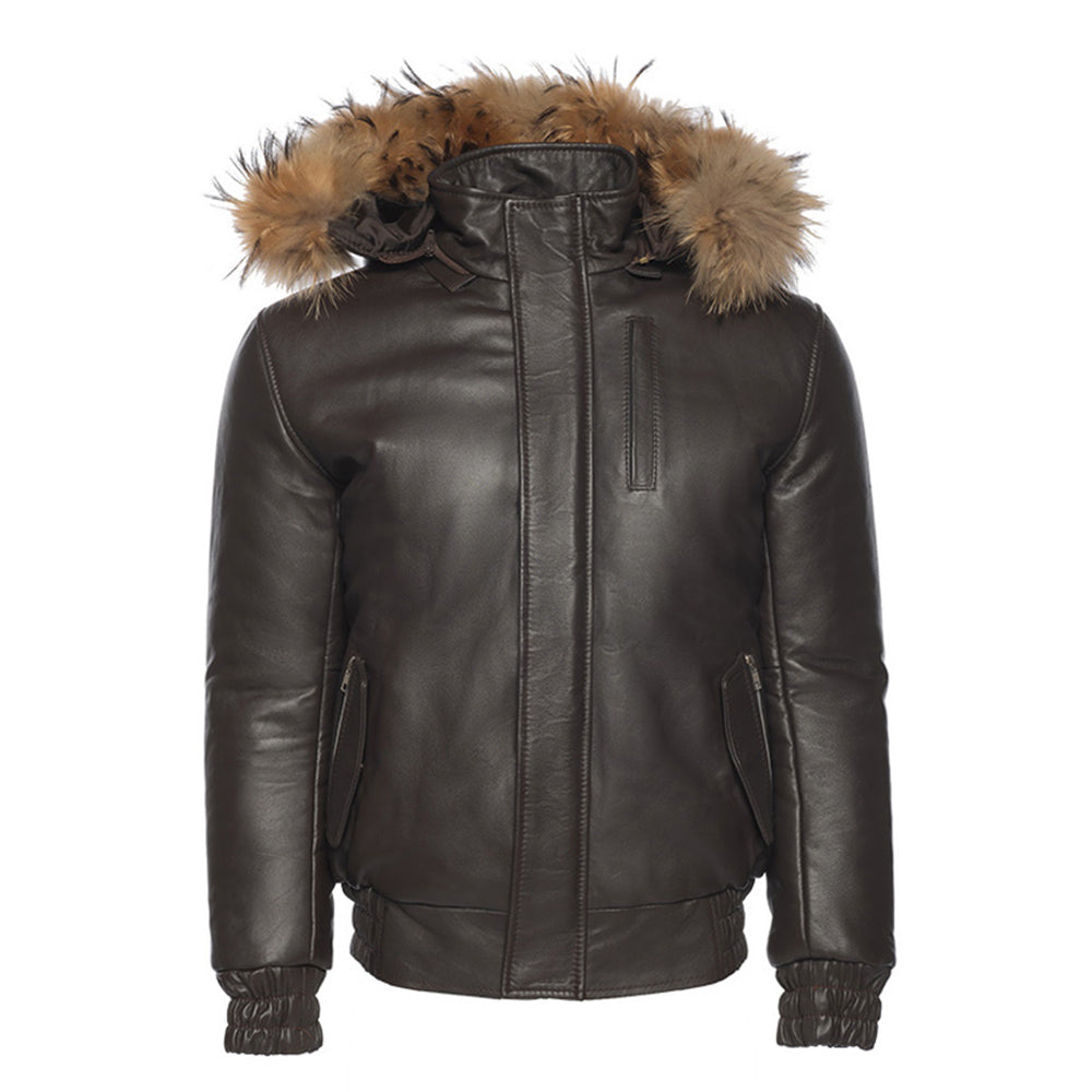 Castillo Brown winter leather jacket with hoodie