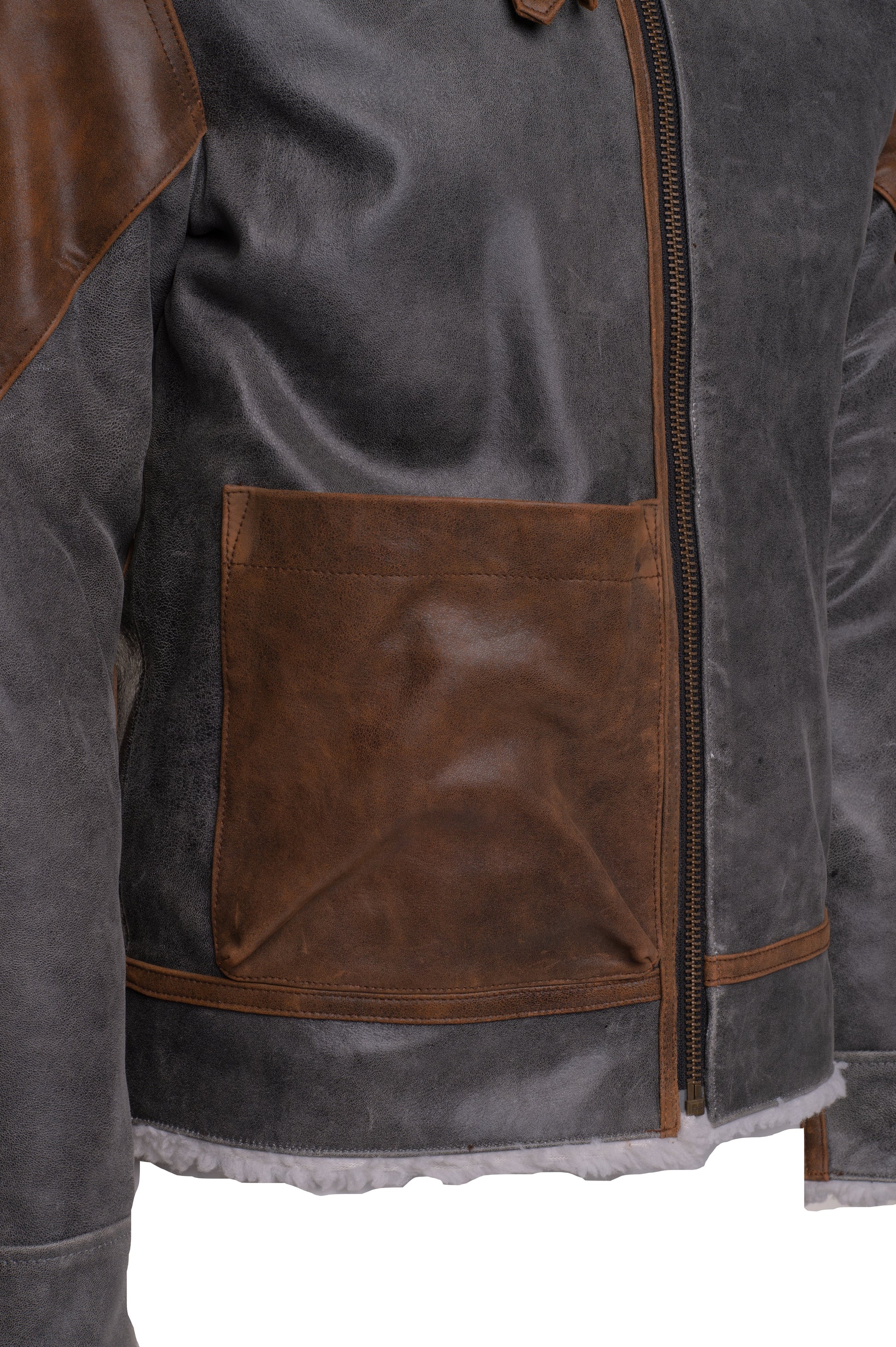 This winter, you don't have to struggle to find a comfortable jacket. Your search ends here when you choose our Scott's Patched Leather Jacket with Sherpa Lining. This cool jacket is crafted of Faux fur lining known as Sherpa and has a shirt-like collar. The zipper closure and open hem cuffs make it easy to wear. It has 1 pocket inside and 1 functional pocket outside so that you can carry your essentials easily.