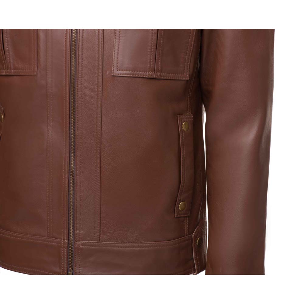 Gangster-vibe clothing adds a different type of charm to your personality, so go for this Brown leather jacket with a collar belt if you’re looking for something like that.