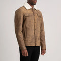 Dallis Distressed Brown Leather Shearling Trucker Jacket