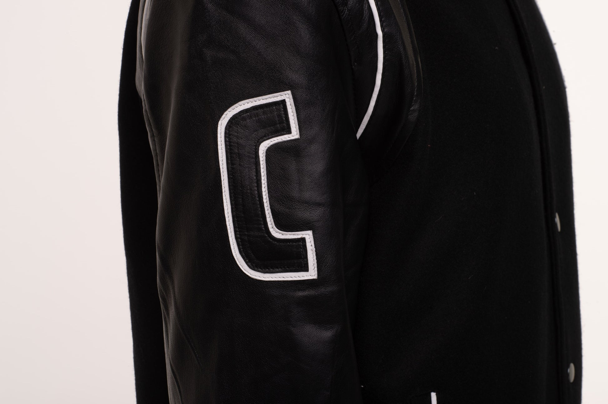The Darrel's Varsity leather jacket with leather lettering is a stylish and durable jacket made from premium quality leather. Featuring leather lettering on the chest and shoulder, this jacket adds a touch of personalization and individuality to your style. With its classic varsity style design, including a ribbed collar, cuffs, and waistband, and a snap button closure, this jacket is perfect for any occasion. Whether you're headed to the game or out on a date, the Darrel's Varsity leather jacket is the perfect addition to any outfit.