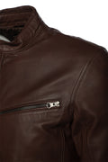 Style Declan Brown Café Racer leather jacket, which is simple, yet charming. This stylish jacket has a satin polyester inner lining for extra warmth. It has a round band snap collar, zipper closure, open hem & cuffs, and 1 pocket inside & 4 functional pockets outside so you can carry your stuff easily.
