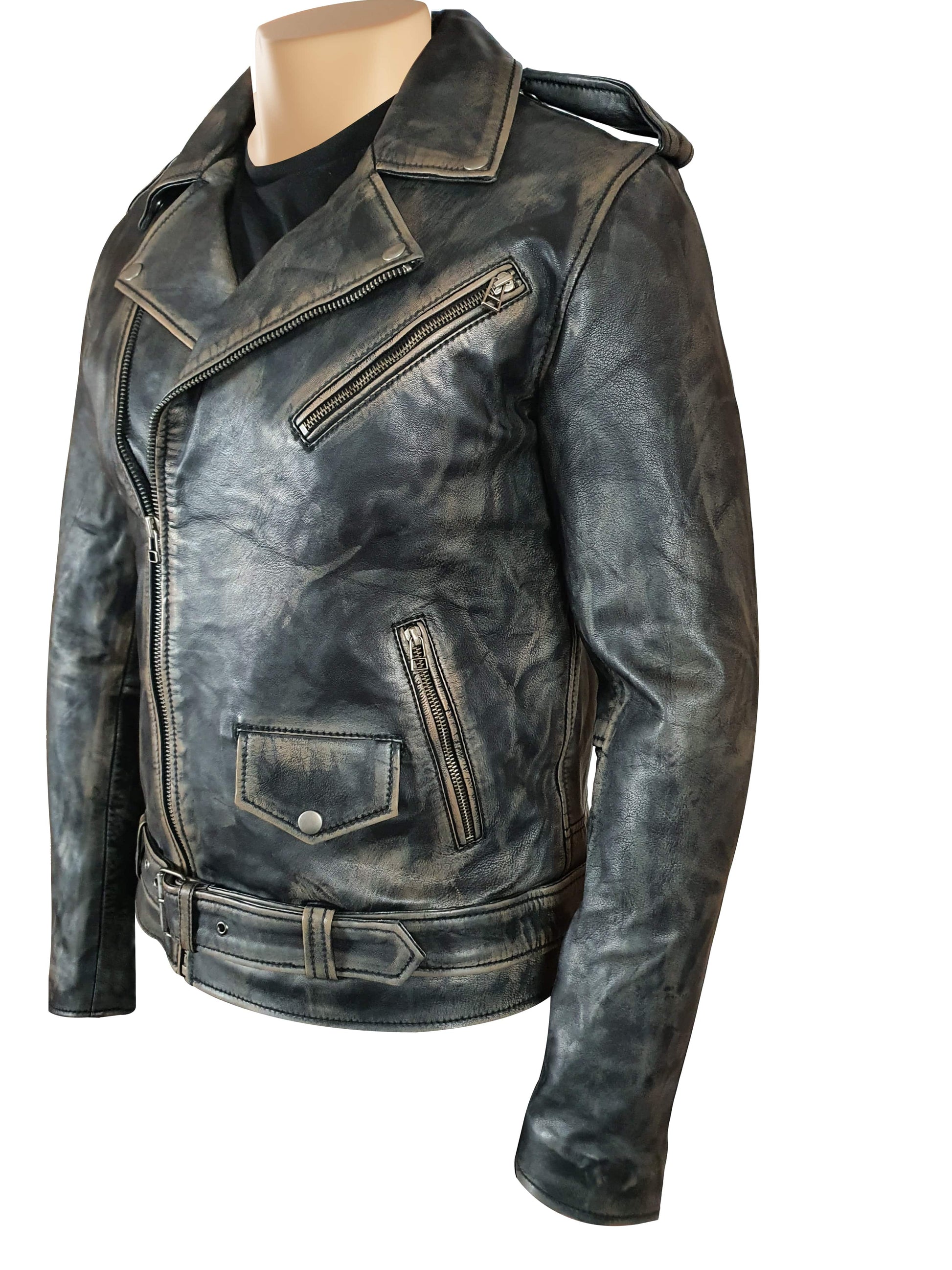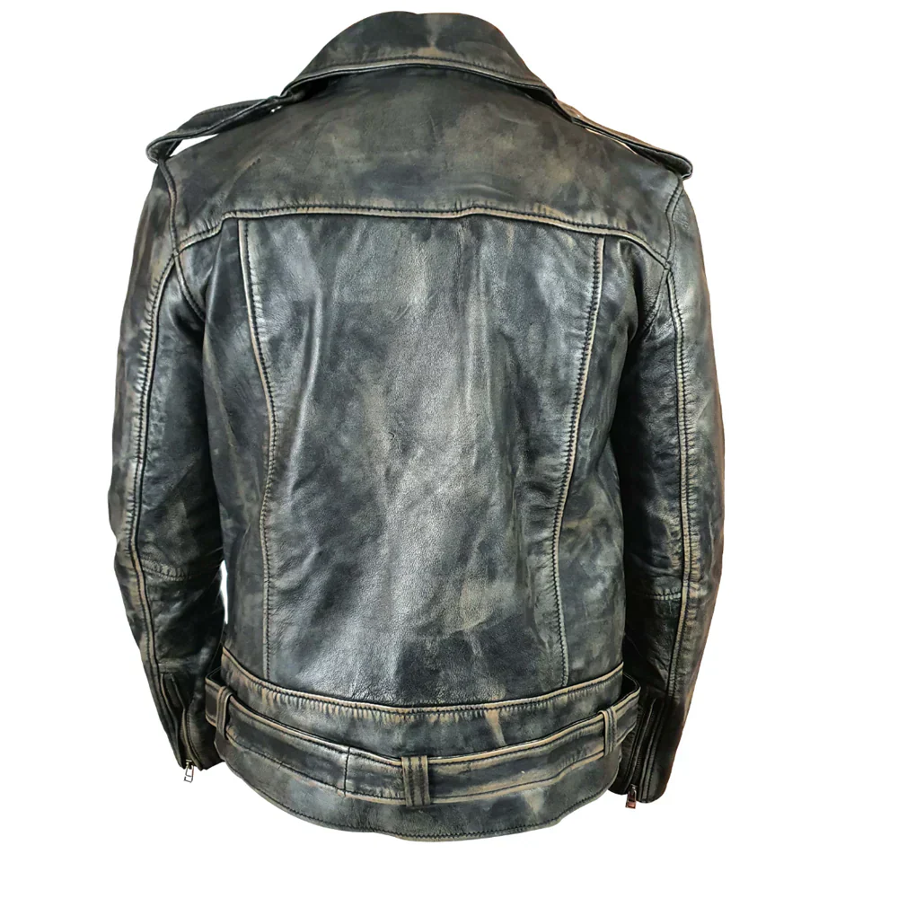 Complete a business-casual look or dress casually with a biker look. No matter what, you'll adore the distressed finish appearance and, more specifically, the retro vibe of this distressed biker jacket with belt. This jacket has notch lapels with press studs collar style, zipper closure, zipper cuffs, and 1 pocket inside, 3 pockets outside, and a coin pocket.