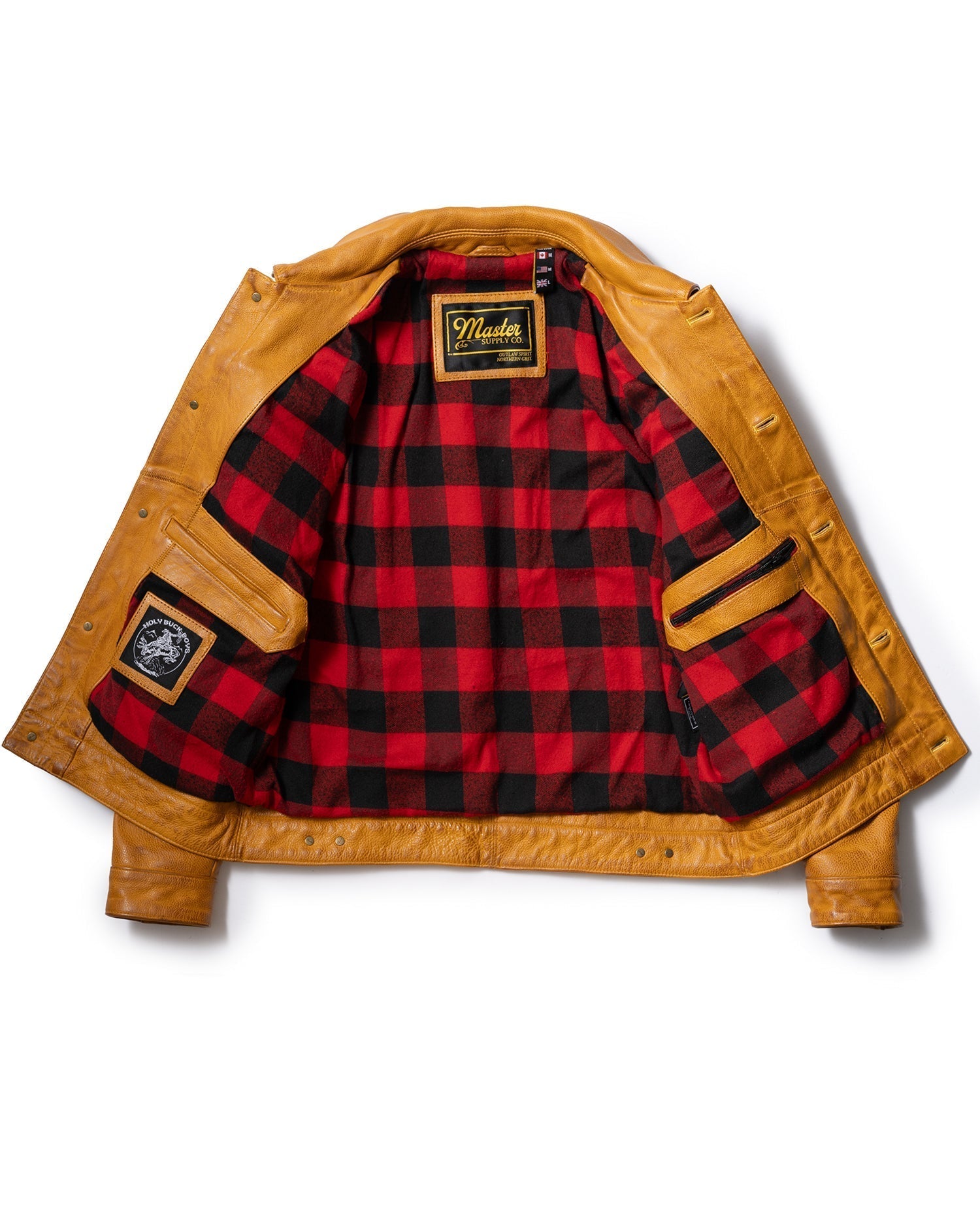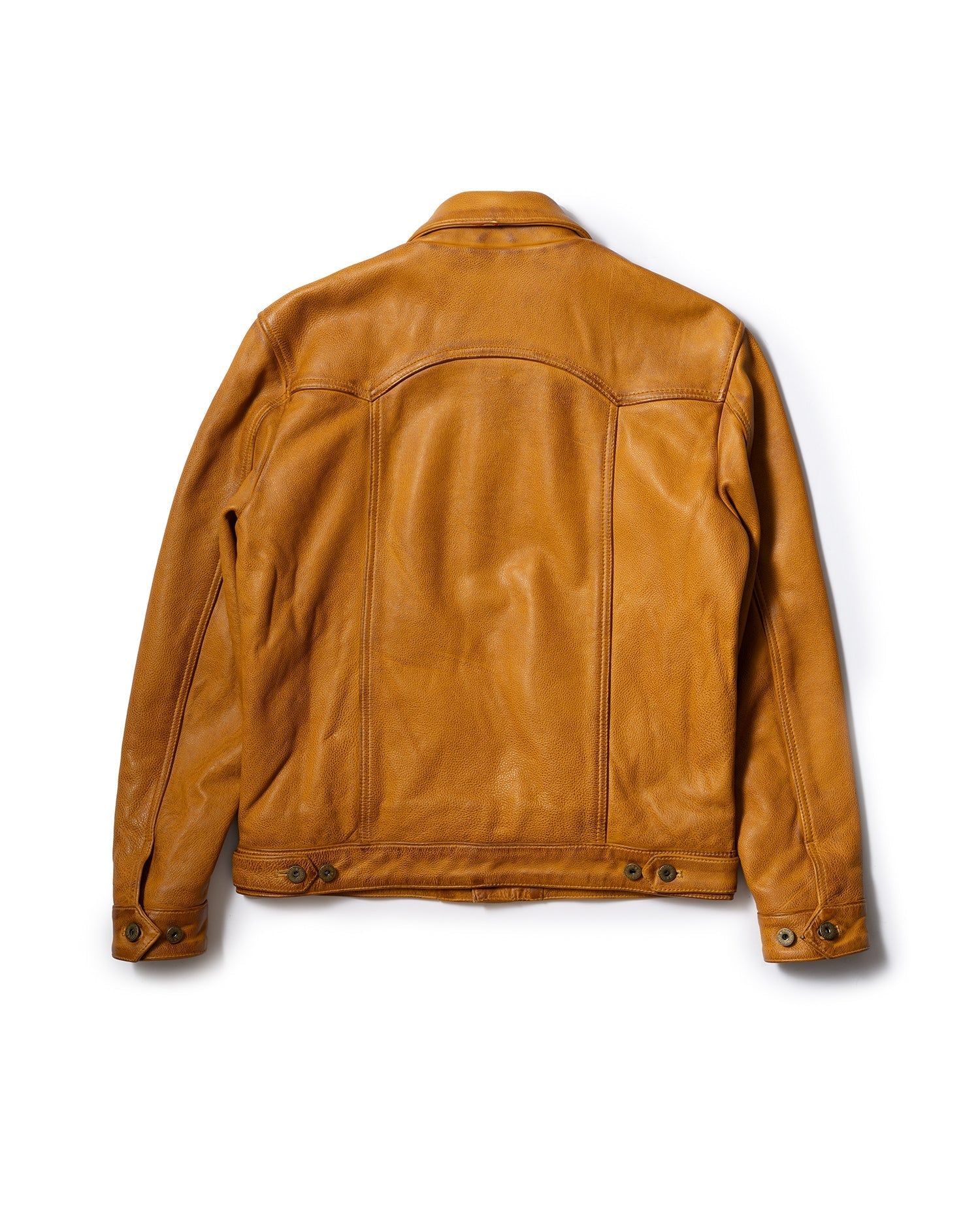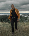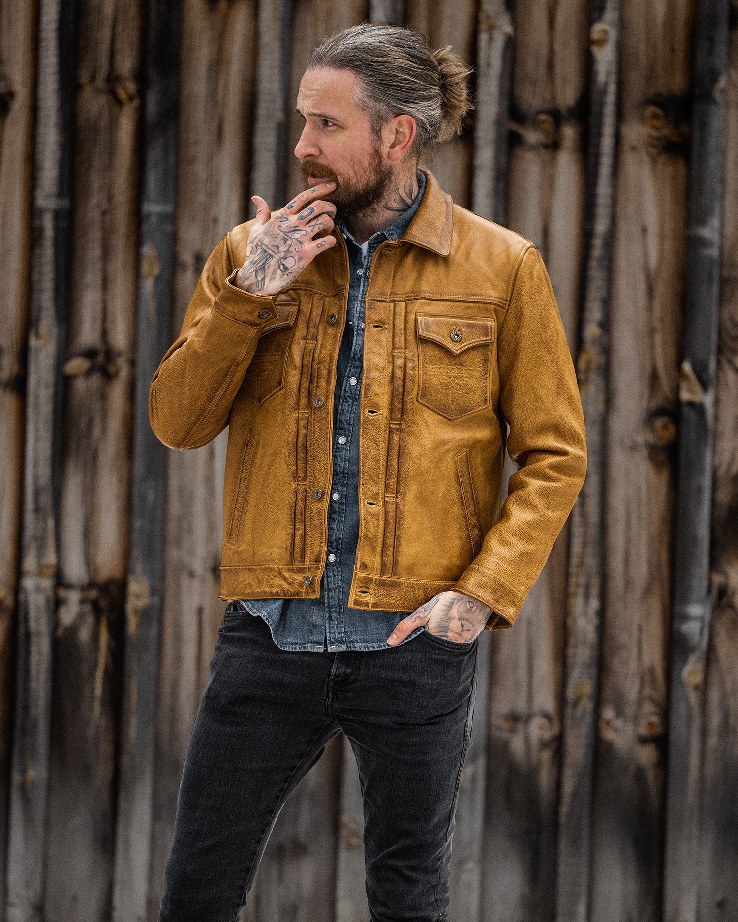 The Goldrush Leather Jacket takes its cues from classic 1960s trucker jackets, featuring pleated front panels, a four-pocket layout, and subtle western touches on the flap chest pockets — all interpreted through Master Supply Co.’s rugged, heritage-driven lens.