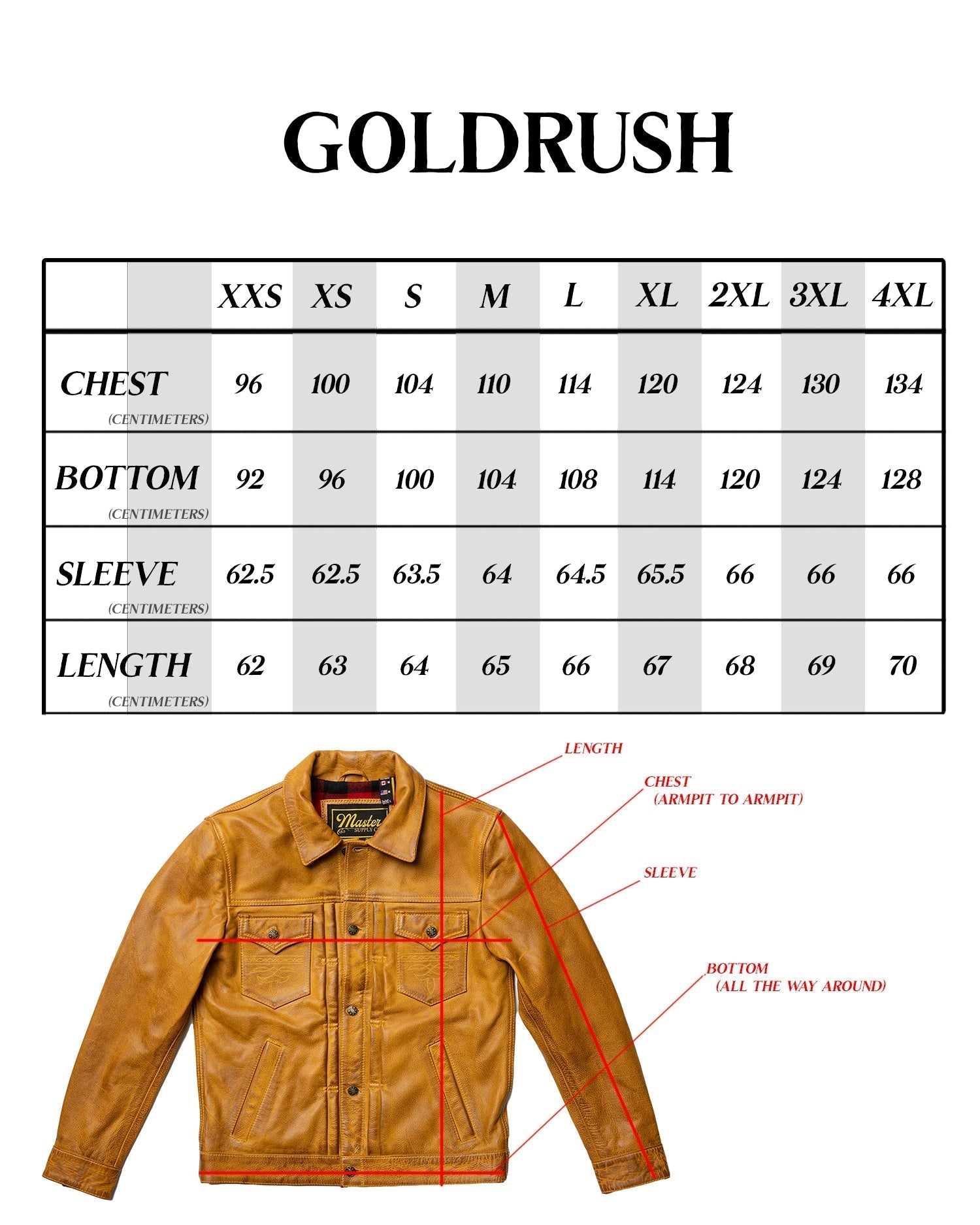 Built for those who appreciate authentic workwear and the slow reward of natural aging, the Goldrush is made to be worn hard and long. A jacket this good gets noticed—and copied. The Goldrush is the original; often imitated, never duplicated.