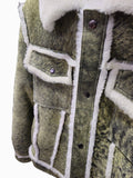 The incredible Hudson's Distressed Green Trucker Shearling Jacket is a die-hard fashionista who rocks every outwear fearlessly by showcasing his versatility and chicness. This shearling jacket is absolutely beautiful and sleek. Hudson's Distressed Green Trucker Shearling Jacket is formulated with 100% fine Spanish merino double-faced sheepskin shearling and supported by a 100% sheepskin shearling interior for making it extremely cozy throughout. The jacket has a marvelous button-style front fastening with a shirt-style collar and buttoned cuffs.