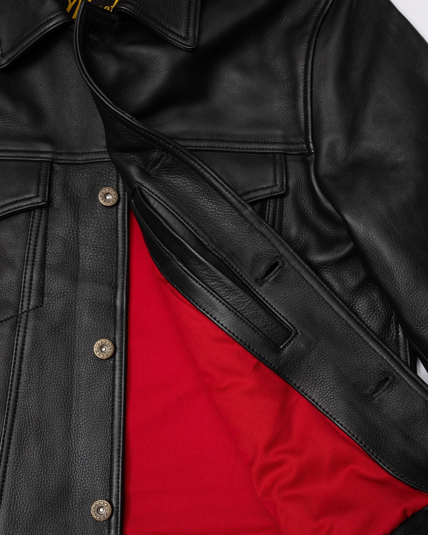 Crafted from our premium 1.5 mm semi-vegetable tanned cowhide, the Jackknife offers unmatched durability and a rugged texture that will age beautifully over time. Inside, you'll find a striking red twill liner that adds a touch of boldness and comfort, along with an interior conceal carry style pocket for practical functionality.