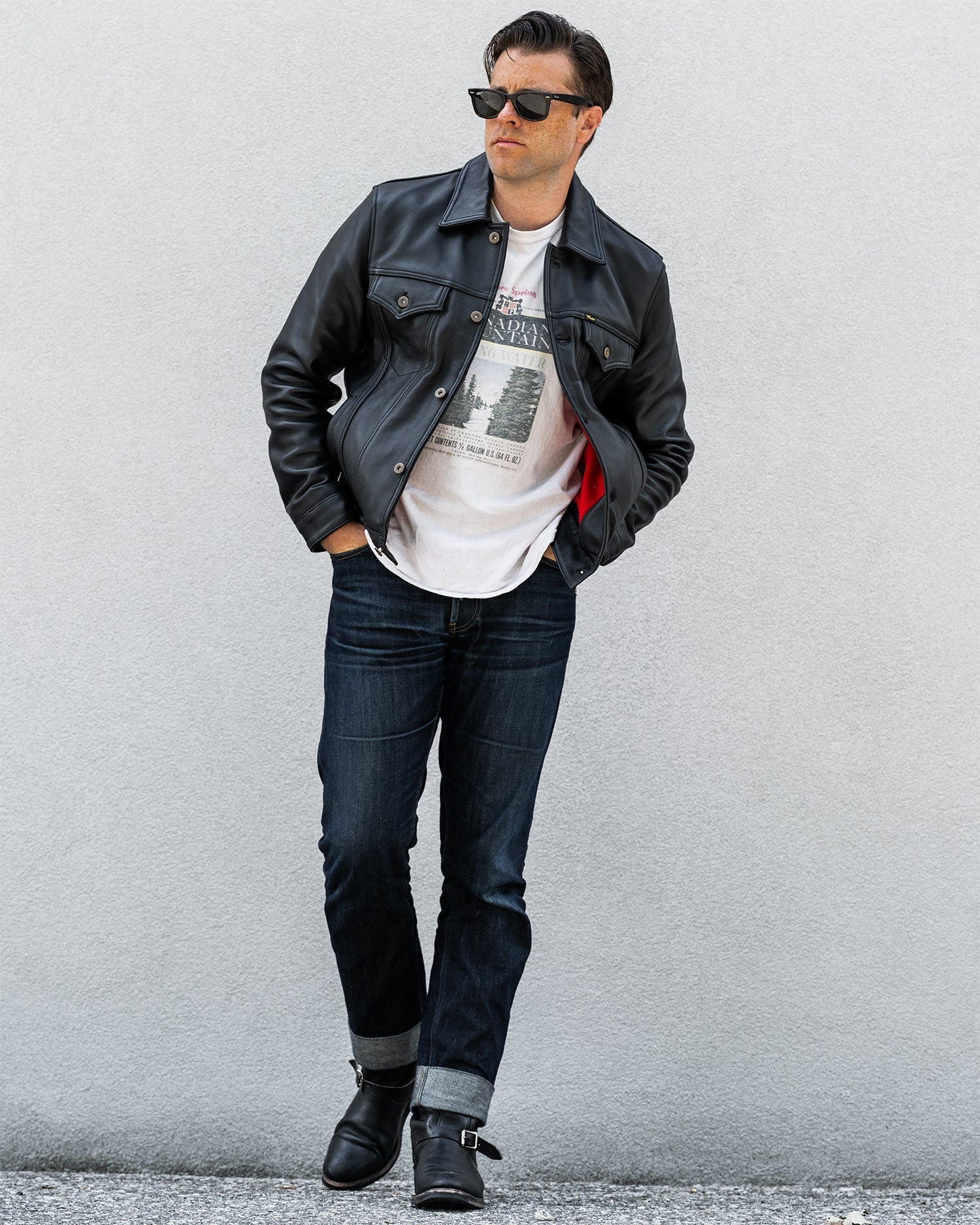 The back of the jacket features a traditional western yoke, embodying classic design elements, and waist cinches for a customizable fit. Whether you're on the open road or navigating city streets, the Jackknife is built to withstand the journey.
