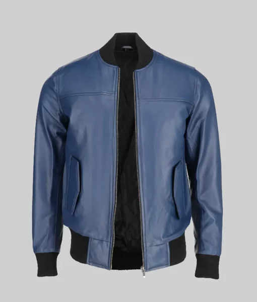 Your One-Way Passport to Cool Jim Men’s Snug Fit Blue Bomber Leather Jacket