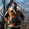 B-3 bomber jacket is a timeless heavyweight shearling, modeled after the original WWII shearling jackets
