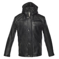 Jules black Buttoned up hooded leather jacket