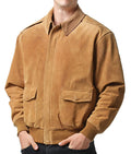 Khai Men’s Caramel RAF A2 Flight Bomber Suede Jacket