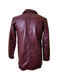 Krueger's maroon buttoned leather blazer