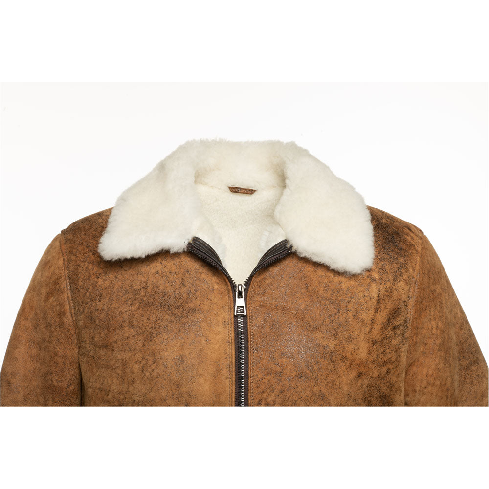 Are you looking for a stylish and versatile jacket that can be worn with any outfit? Look no further than Lucian's distressed brown A2 Bomber shearling jacket.