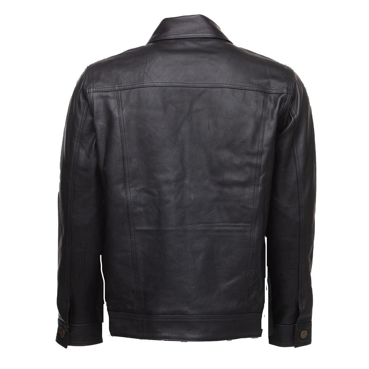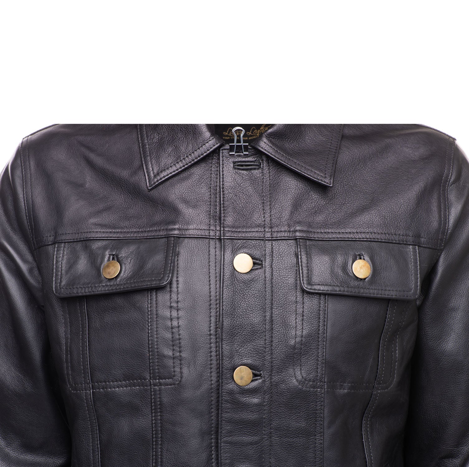 Get everyone on edge by donning a unique jacket. Our Mason Trucker leather jacket with buttoned cuffs is something that can fulfill your needs. This timeless piece has a Buttoned Closure, Shirt like collar, buttoned cuffs. Wear this exceptional leather jacket which has one pocket inside and two front pockets outside to keep your belongings safe.