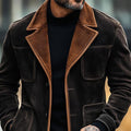 Elevate your style with this Men's Colorblock Suede Notch Lapel Multi-pocket Single Breasted Blazer Jacket, a sophisticated piece that merges classic tailoring with modern design elements.