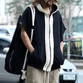 Men's Loose Color Block Hooded Short Sleeve Sweatshirt Jacket 83697432Y