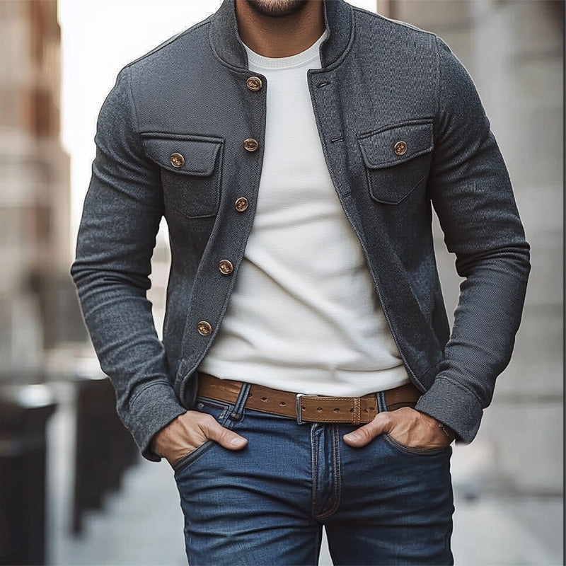 The Men's Spring/Autumn Dark Grey Twill Button Jacket is not just an outer jacket but a statement of style and subtle elegance. Whether you’re heading to the office, dining out, or enjoying a casual weekend outing, this jacket promises to be your go-to layer, harmonizing effortlessly with both casual and semi-formal attire.