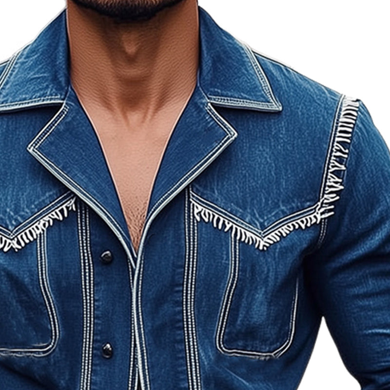 Men's Stylish Notched Lapel Fringed Denim Jacket