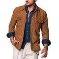 Men's Vintage Suede Double Breast Pocket Lapel Overshirt 49857209Y
