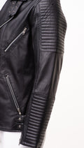 Looking to update your wardrobe with some new winter wear? Then try on our Micheals biker-style leather jacket with snap button closure will be a perfect choice. The satin polyester lining inside this jacket will keep you cozy, and it also features a side zipper Closure with 4 sets of snap button closures for a sleek and sophisticated appearance. In addition, it has Notch lapels with press studs, Zipped cuffs, two pockets inside, and three functional zipper pockets outside. Streamlined sleeves give a more flattering fit to the arms.