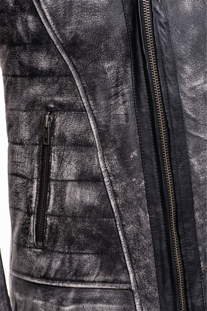 Miles stone wash biker leather jacket