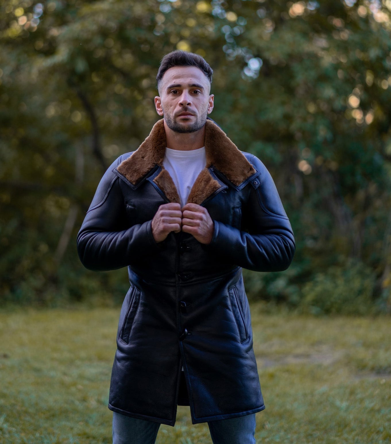 - Outer Shell: Made with 100% fine Spanish merino double faced sheepskin shearling. Designed for the rugged winter.