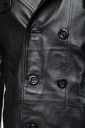 Wear this stunning Reiner black leather button-up long coat for your winter comic con costume as a charming detective. Besides having so many styles, this coat also protects against cold weather. This coat has a Button up Closure, Notch lapels collar, open hem belted cuffs, 1 pocket inside, and 2 large pockets outside.