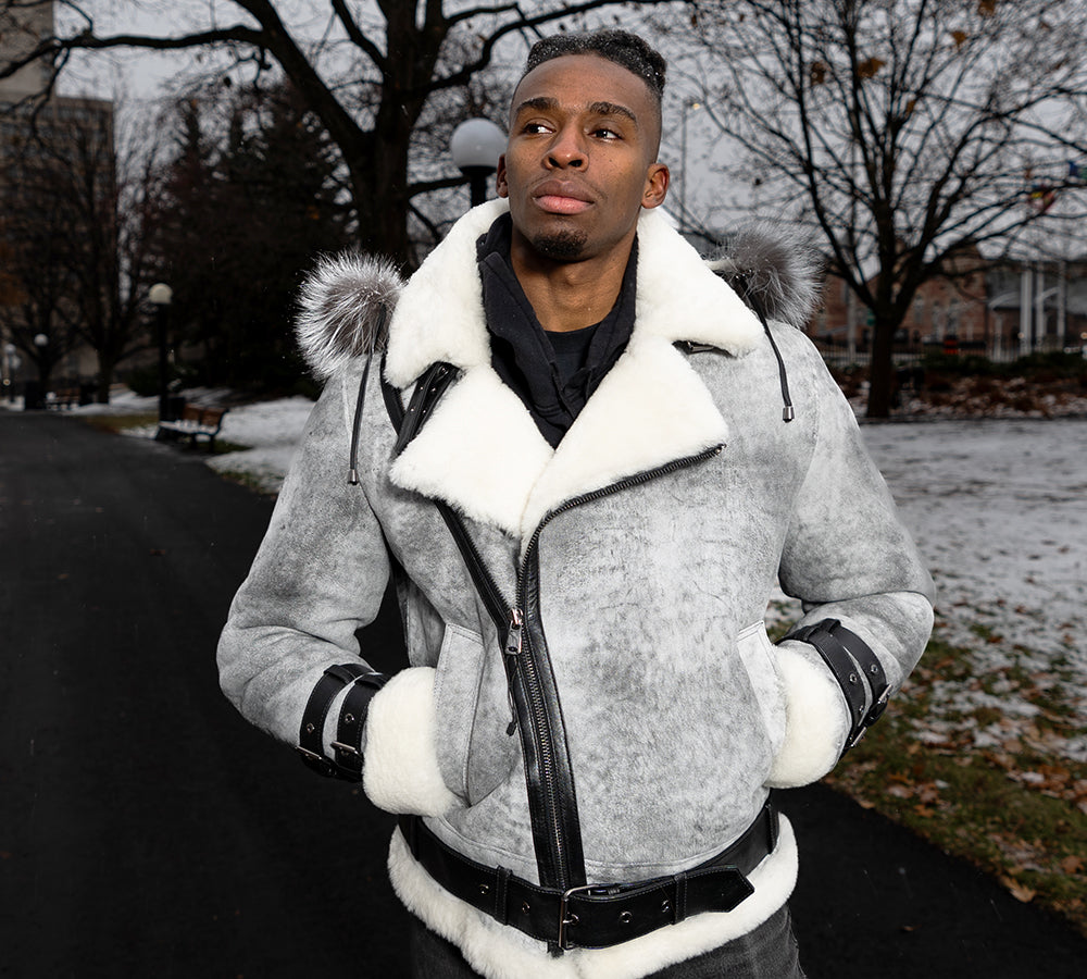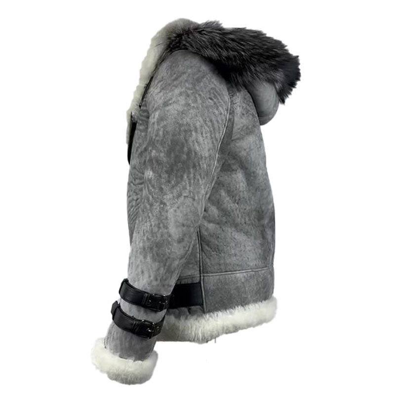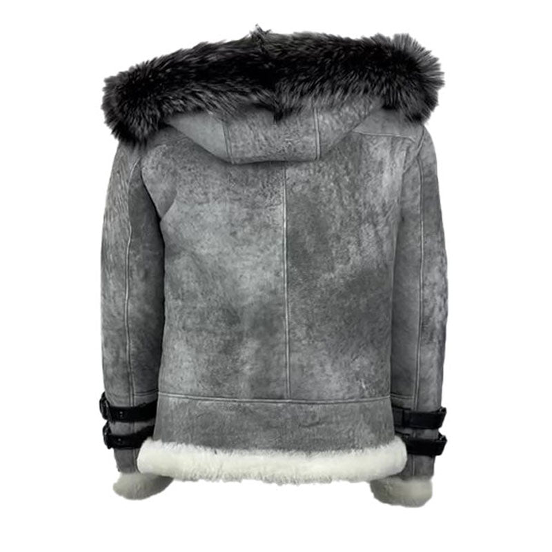 The upcoming season is going to be exciting for all of you out there because we bring this incredible Rocco Vintage Distressed Grey Aviator bomber shearling jacket with hoodie that will make you grandstander among the crowd.