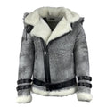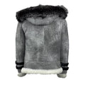 Rocco Vintage Distressed Grey Aviator bomber shearling jacket with hoodie