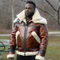 Terry Gretzky Vintage Oxblood bomber jacket with double collar is a simple but very elegant leather jacket. If you like to wear Bomber jackets, then this Terry Gretzky Vintage Oxblood bomber jacket is a must-have for you. We have manufactured it with 100% fine Spanish merino double-faced sheepskin shearling. It has a shirt-style collar with a double fur collar. Full sleeves have shearling cuffs.