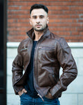 Reinvigorate the flairs of your fashion with our luxurious Thatchers premium hand waxed brown leather jacket to upgrade the elegance of your wardrobe. This astounding jacket has doubtless engaging features that are sure to elevate your social status and sense of style. It has a shirt style collar with zipper closure and open buttoned cuffs for fastening promptly, and for the safety of extremes cold. The jacket is manufacture by using premium hand waxing techniques.