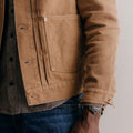 Our vintage-inspired trucker jacket, The Ryder, gets a new, work-ready finish. Rendered in our custom double-dyed Chipped Canvas and featuring a distinctive double-pleated front, this trucker is designed to develop unique character the harder you wear it.
