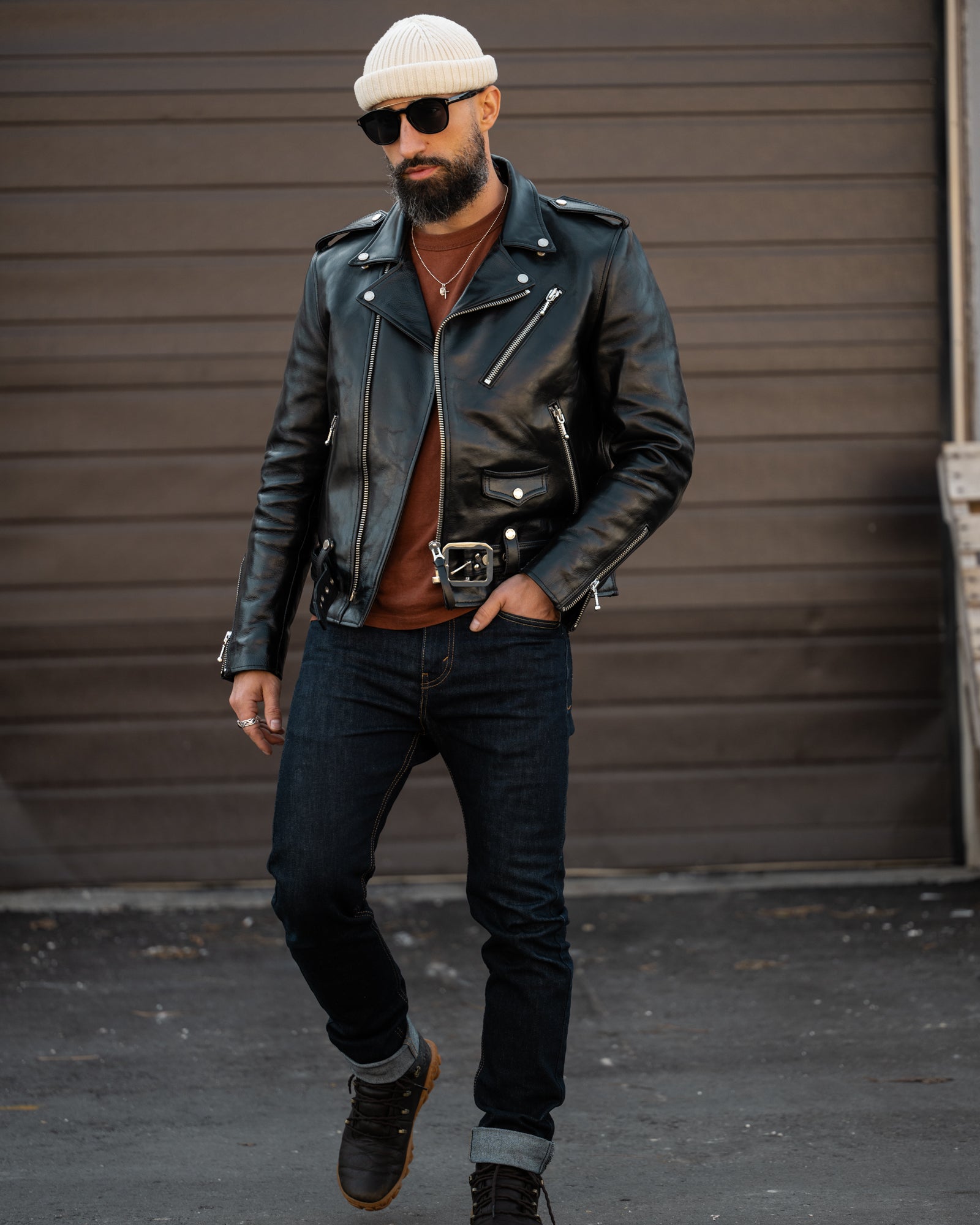 Each jacket is designed in Toronto and built in our own dedicated workshop in Pakistan. We oversee every step — from pattern drafting to leather selection to final inspection. Every jacket is individually photographed, measured, and quality-checked before leaving the shop. We produce in small batches using full-grain leathers, custom hardware, and offer complimentary custom sizing on all builds.