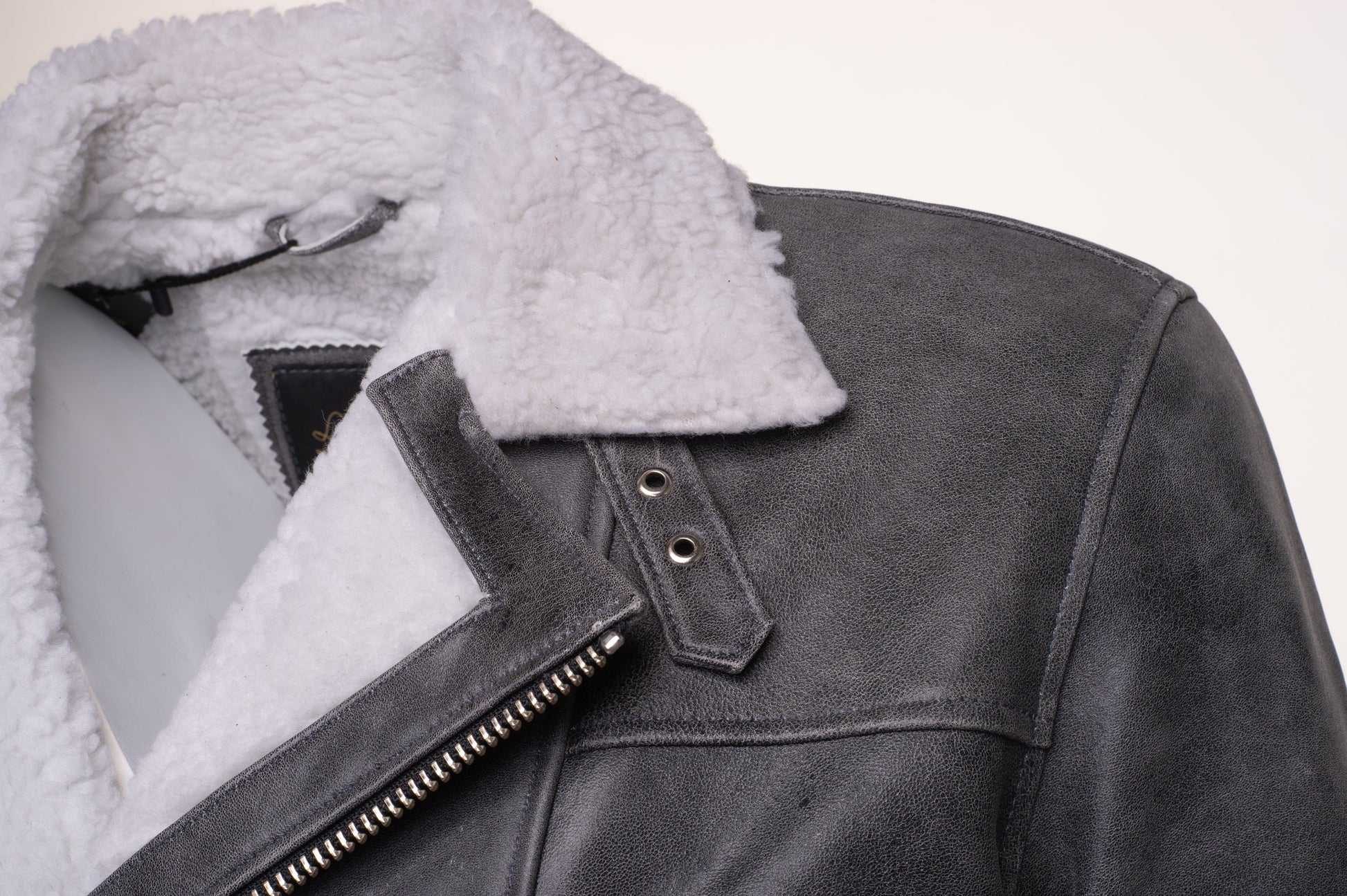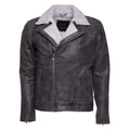 Vintage Grey Biker Leather jacket with Sherpa lining